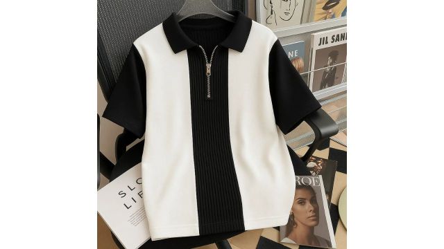 The zip neck on this white and black tee is what makes it interesting—it’s not something you see every day, and it gives you options. Zip it up for a cleaner, more structured look, or leave it open for something more relaxed. The self-design pattern adds subtle texture without being flashy, and the cotton blend fabric is comfortable for everyday wear. The color combo is classic and works with pretty much everything in your closet. It’s one of those pieces that feels a bit different without being weird about it.